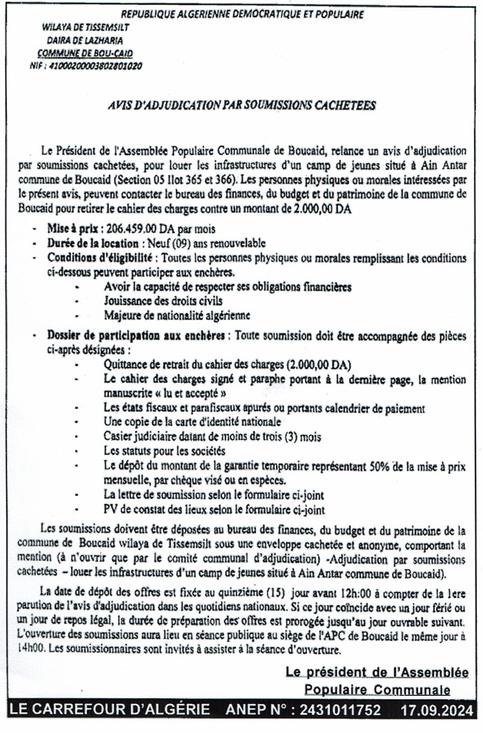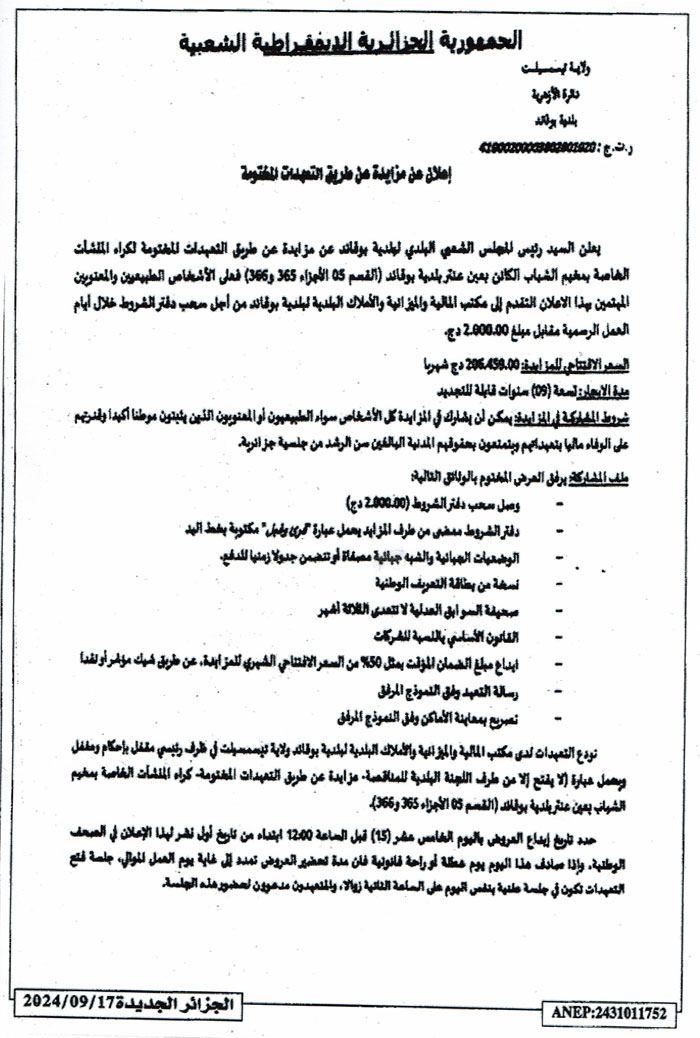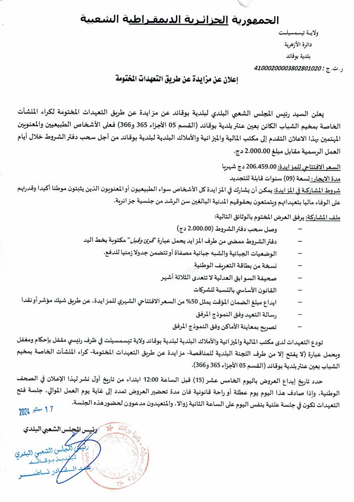 إعلان عن مزايدة عن طريق التعهدات المختومة