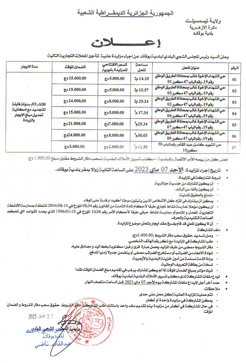 إعلان عن إجراء مزايدة علينة لتأجير محلات تجارية